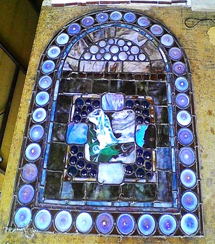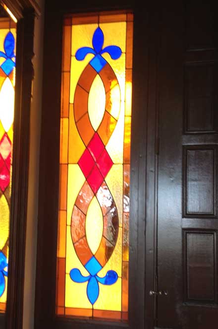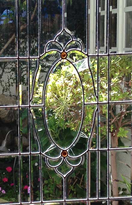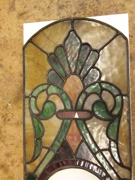 After - The beveled pieces are replaced with new and the panel was rebuilt with new lead.